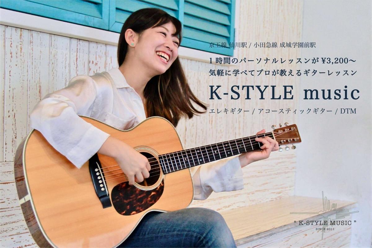 K-STYLE musicは東京都調布市 京王線仙川駅にあるギター教室です。小さなお子様からシニアの方まで幅広い層にご支持を頂いております。2011年にオープンし述べ200人以上の生徒様に受講頂いております。「業界最安値のレッスン料金で充実した個人レッスン」をモットーに、生徒様ひとりひとりに寄り添い、音楽を楽しんで頂いております。